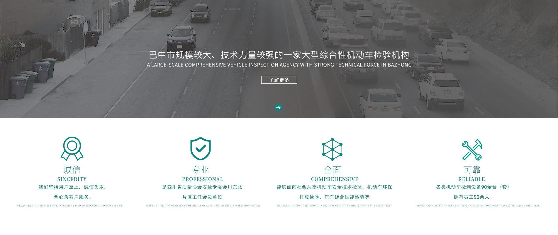 巴中市國巍實業(yè)集團有限公司成立于2015年,是巴中市規(guī)模較大、技術(shù)力量較強的一家大型綜合性機動車檢驗機構(gòu)。公司秉承“誠信、專業(yè)”的經(jīng)營理念,堅持用戶至上、質(zhì)量為本。公司擁有員工50余人,巴中車輛檢車站隸屬于巴中市國巍實業(yè)集團有限公司,現(xiàn)有各類機動車檢測設(shè)備90余臺(套),能夠面向社會從事機動車安全技術(shù)檢驗、機動車環(huán)保排放檢驗、汽車綜合性...